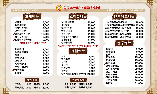 대부분 무료 또는 자율시공인 부분이라 개설비용에 대한 안내가 별도로 없다. 매장별로 인테리어 구성이 달라 의아했었는데, 순대국집 브랜드라면 충분히 이러한 정책도 메리트가 있다고 생각한다.
