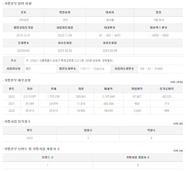 * 가맹사업시작일 : 2017년