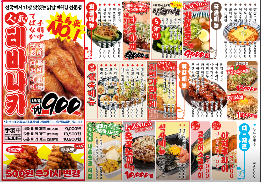 일어가 적혀 있어야 익숙할법한 메뉴판 디자인이다. 그만큼 일본풍 이자카야 풍을 고집하였고, 메뉴 전반적인 구성이 일본식 구성임을 알 수 있다. 그러나 일반 가맹점에서도 쉽게 조리가 되어야 하기에 조리 난이도가 어렵지 않은 메뉴들로 구성되어 있다는 점 역시 프랜차이즈로 긍정적인 요소이다.