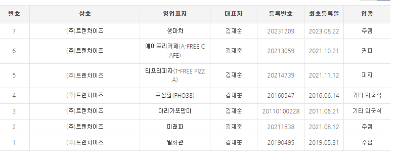 브랜드 생마차는 '트렌차이즈' 라는 프랜차이즈 전문 회사에서 운영하는 이자카야이다. 현재 트렌차이즈는 생마차를 비롯하여 6개의 브랜드를 운영 중이다. 그 중 밀회관과 아리가또맘마는 성공적으로 안착한 브랜드 모델이다.